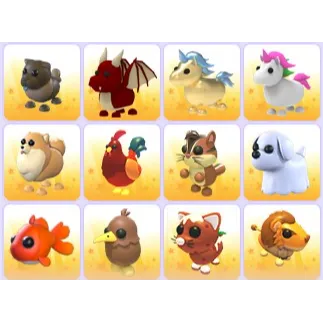 Chocolate Chow Chow, Dragon, Golden Unicorn, Unicorn, Pomeranian, Rooster, Chipmunk, Ghost Dog, Goldfish, Kiwi, Pudding Cat, Steppe Lion