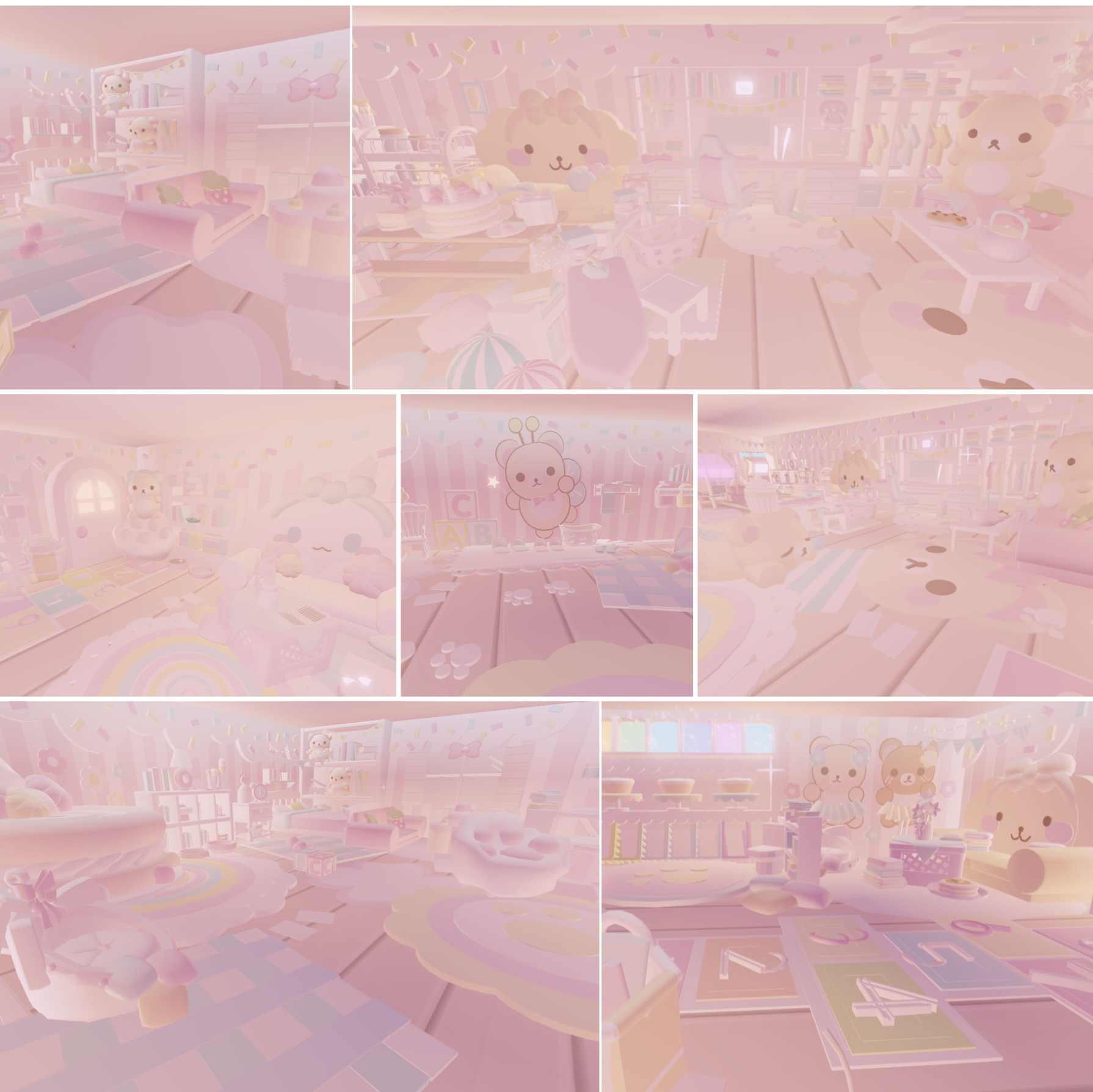 Step into the ultimate Cutecore dream home! This build is designed inside the Shop House and decorated with custom furniture, plushies, and cluttered pastel details that bring pure cozy vibes. Every room is packed with charm, from rainbow rugs to plush clouds, heart seating, and playful decor that feels straight out of a toy shop.