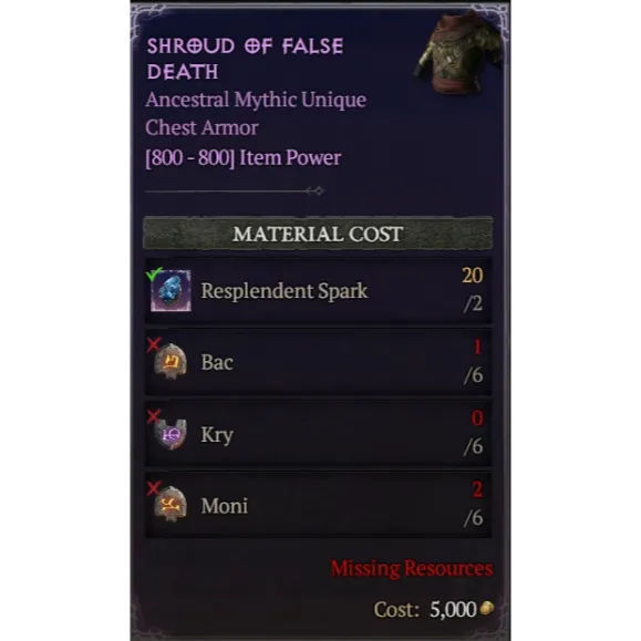 Diablo 4 | S11 | Rune | x6 Bac, x6 Kry, x6 Moni | 1 Set Rune Shroud Of False Death