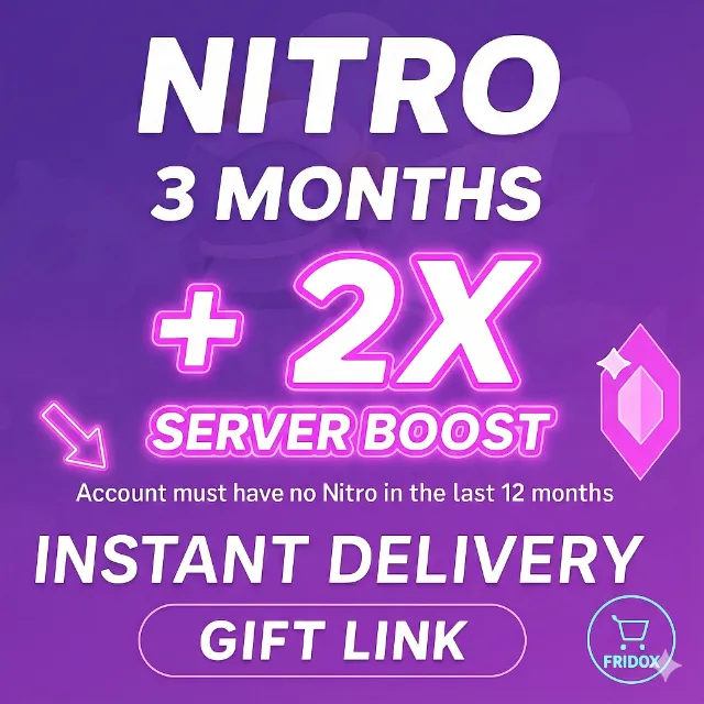 Discord Nitro 3 Months 2 boosts make sure your account have no nitro in last 12 month and 30 days old