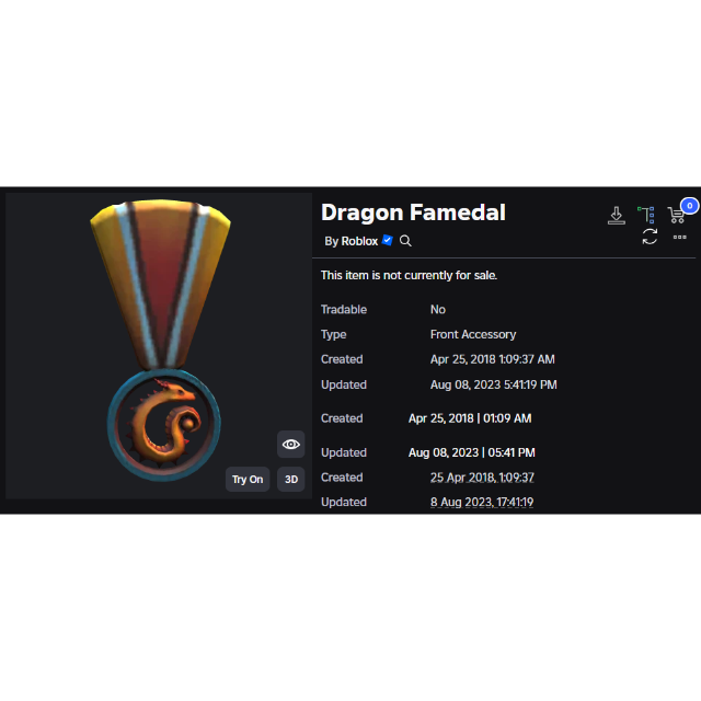 Item: https://www.roblox.com/catalog/1665618746/Dragon-Famedal