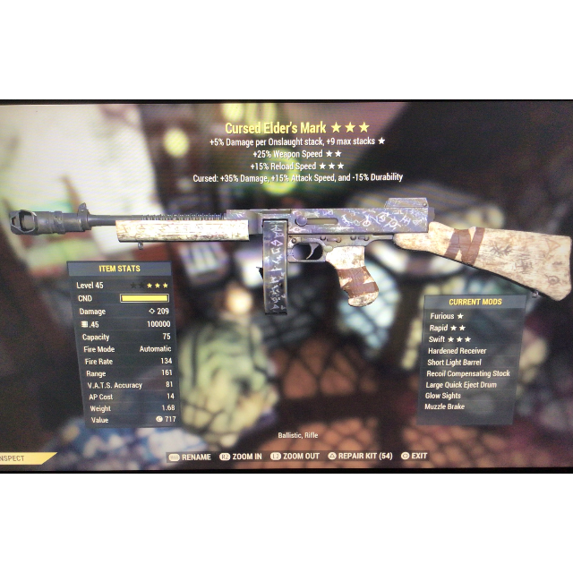 - Lucky Hit 3 star mod ( +15 Bonus VATS Critical Charge )