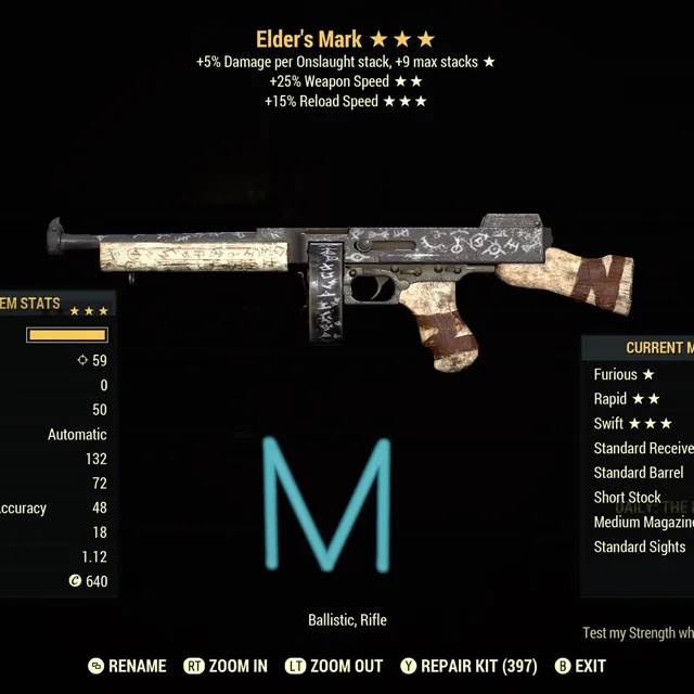 Fallout 76 Xbox one / 1 Unrolled Elders Mark. I can mod it with a prime receiver if you’d like.