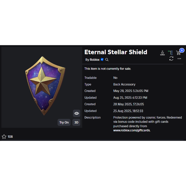 Item: https://www.roblox.com/catalog/126840140857887/Eternal-Stellar-Shield