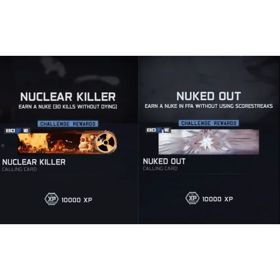Nuked Out is the Calling Card earned by dropping a Nuke in Free for All without using any scorestreaks , the hardest Dark Ops challenge.