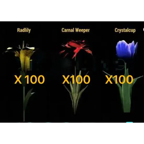 [WARNING: Stay safe! Deals made outside Gameflip aren’t protected. Always trade and chat within Gameflip.] [PC](The Big Bloom)NEW 3 in 1 Flowers Bundle・x100 Radlily・x100 Crystalcup・x100 Carnal Weeper