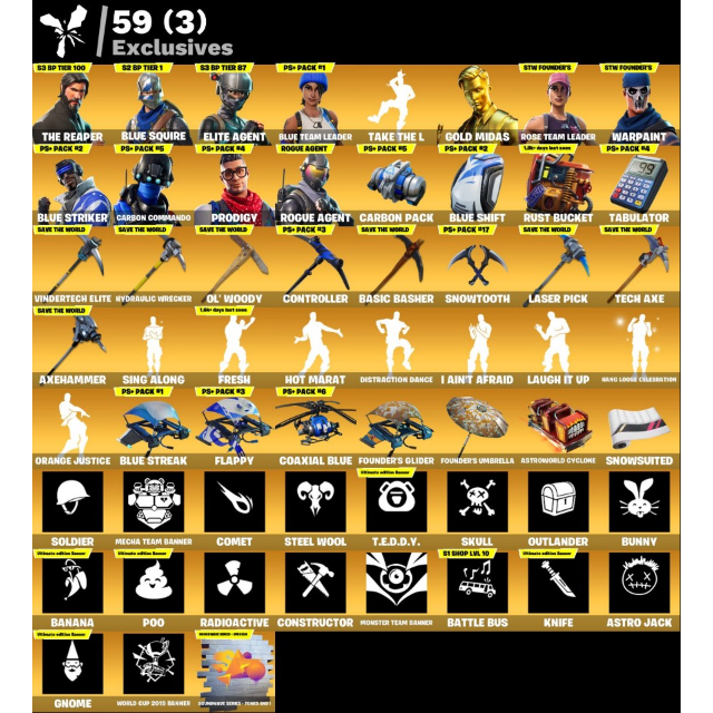 Fortnite: 160 SKINS The Reaper | Blue Squire + Save The World Founder's Ultimate Edition lvl 309 - P.L: 121 ✉️ Full Access