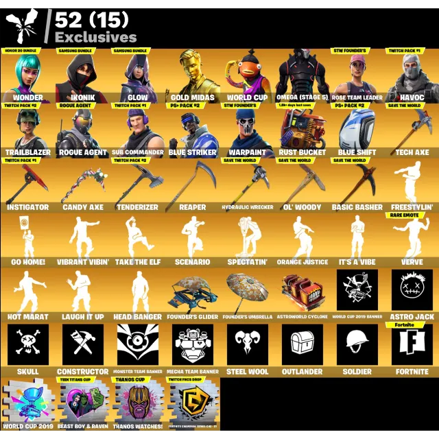 Fortnite: 222 SKINS Wonder | Ikonik | Glow | Omega (Stage 5) + Save the World's Founder's Deluxe ✅ All Platforms ✉️ Full Access
