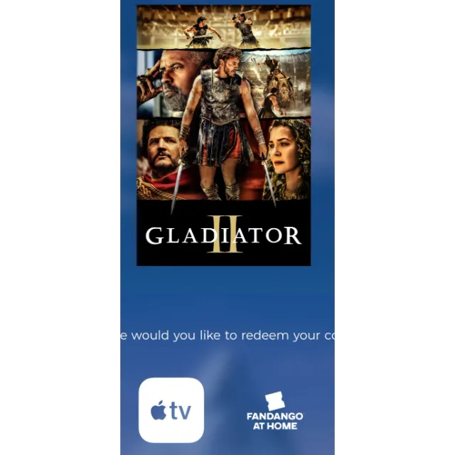 Gladiator II 2 Digital movie code 4k Code fandango at home or itunes wont port