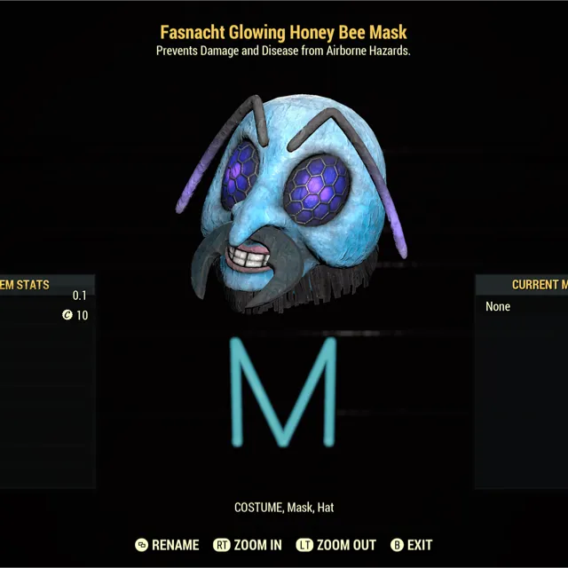 Fallout 76 Xbox one / Fasnacht Glowing Honey Bee Mask