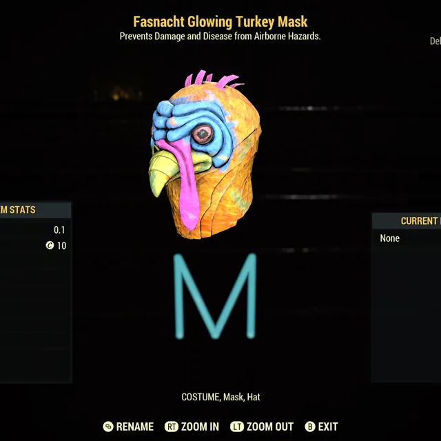Fallout 76 Xbox one / Fasnacht Glowing Turkey Mask