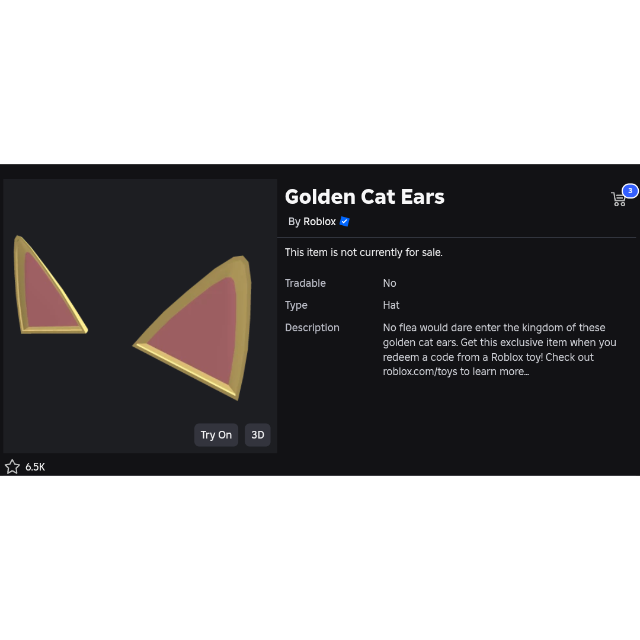 You're gonna get the toy code item "Golden Cat Ears". Redeem on the Roblox website.
