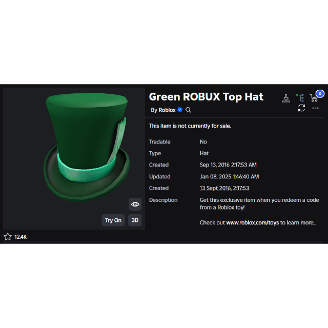 Item: https://www.roblox.com/catalog/501942551/Green-ROBUX-Top-Hat