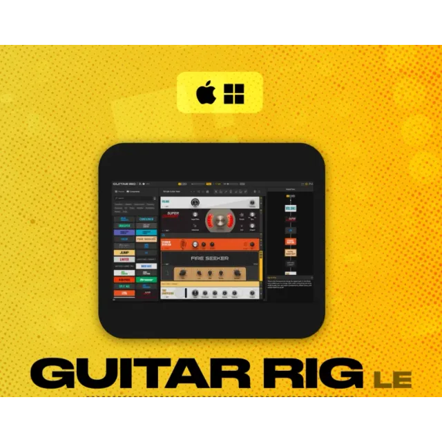 Guitar Rig 6 LE is a lightweight version of the iconic guitar processor from Native Instruments. It includes modern amps, cabinets, reverbs, delays, compressors, and effects pedals.