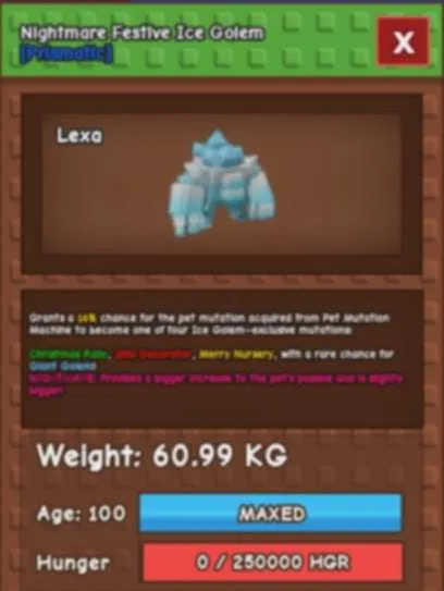 HUGE NIGHTMARE FESTIVE ICE GOLEM(60.99KG MAX)