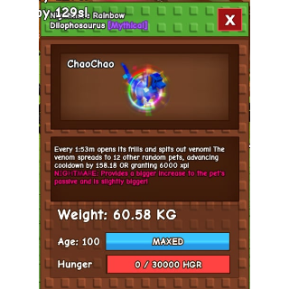 Don’t miss this chance to own a rare and powerful Huge Nightmare Rainbow Hatch Dilo — great for XP grinding and boosting your collection!