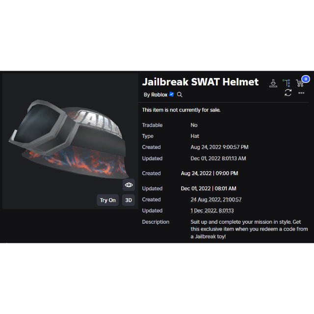 Jailbreak SWAT Helmet Toy Code