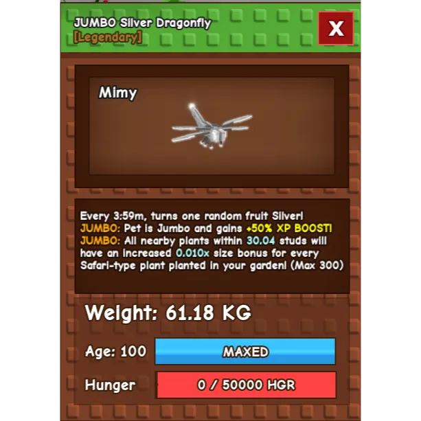 JUMBO SILVER DRAGONFLY (61.18KG) (1PET)