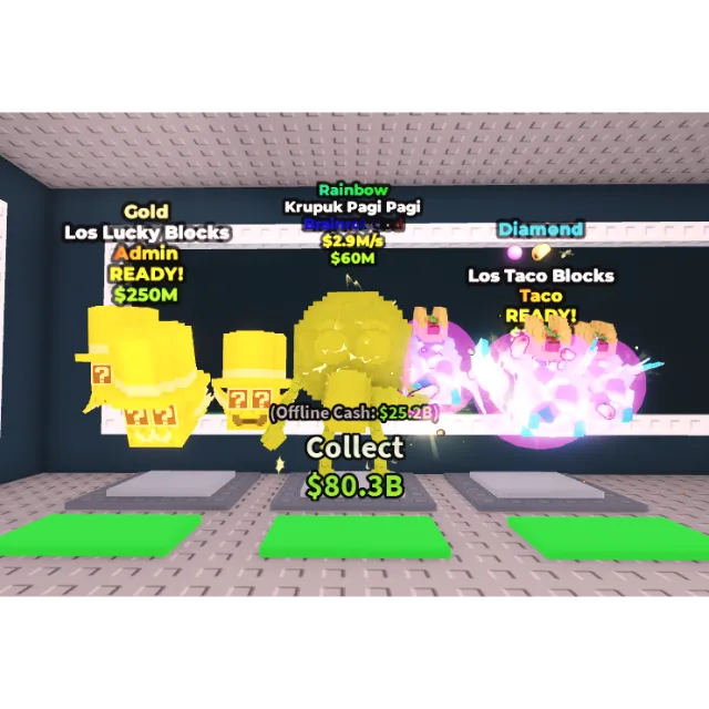 Krupuk Pagi Pagi RAINBOW + LOS LUCKY BLOCKS ADMIN GOLD + LOS TACO BLOCKS DIAMOND