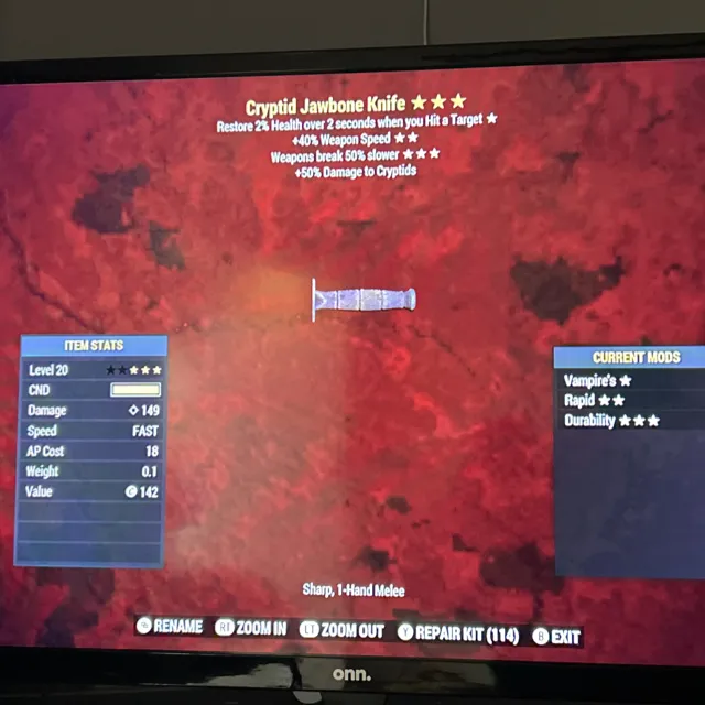 Type: Weapon Cryptid, jawbone knife The blade is missing on this knife. It is legacy. Bladeless knife