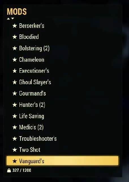 I am selling all of my legendary mods in one bundle. There are 81 legendary mods all together.