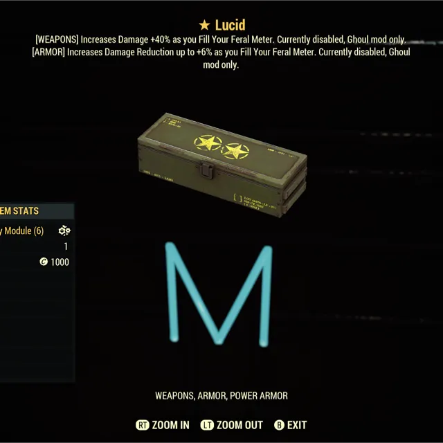 Fallout 76 Xbox one / 5 One Star Lucid mods. New from the burning springs update.