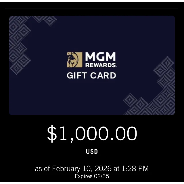 MGM e-gift card $1000.00 USD