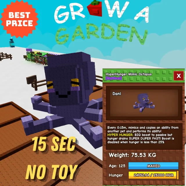 GROW A GARDEN HYPERHUNGER MIMIC OCTOPUS 15 SEC NO TOY