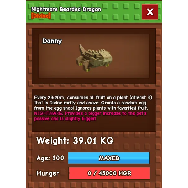 Nightmare Huge Bearded Dragon Grow A Garden max Ability without any Toy