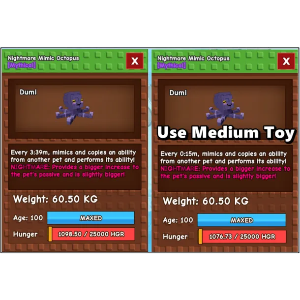 → Using Medium Toy Ability : Every 0:15m (15 second), mimics and copies an ability from another pet and performs its ability!