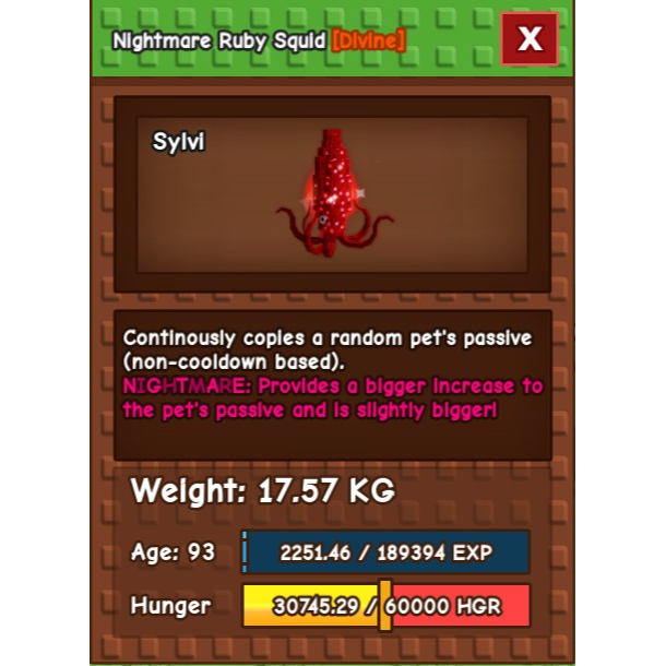 nightmare ruby squid(new divine pet)
