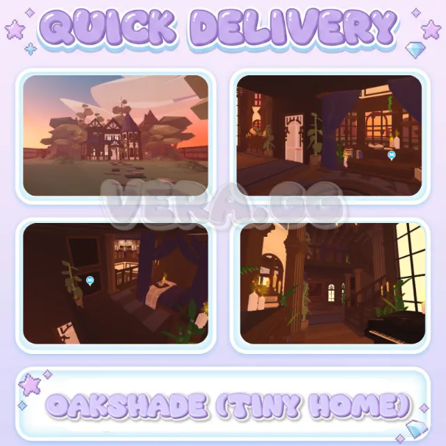 Step into your very own elegant, moody estate! This custom-built Oakshade home is an architectural masterpiece, cleverly designed within the Adopt Me Tiny Home shell.