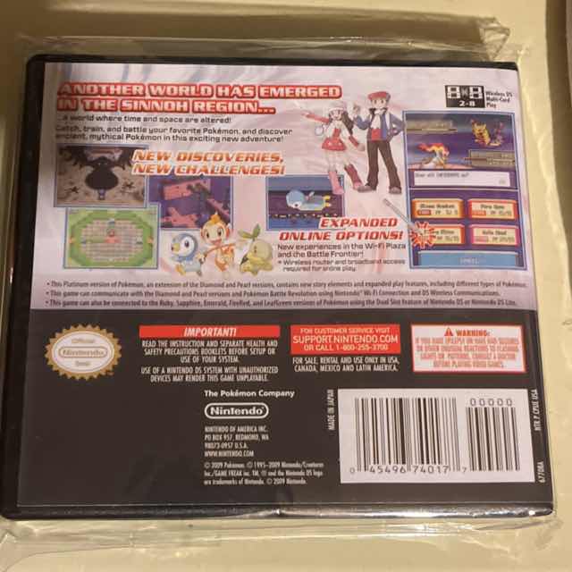 In Pokémon Platinum, another world has emerged in the Sinnoh Region, a world where space and time are altered! Catch, train, and battle your favorite Pokémon, and discover ancient, mythical Pokémon in this exciting adventure! The platinum version also has expanded online options with new experiences in the Wi-Fi Plaza and Battle Frontier!