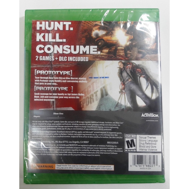Bundle includes Prototype® and Prototype®2 with DLC! PROTOTYPE: Discover what lies beyond the edge of evolution. Play as Alex Mercer, a genetically mutated shape-shifter with no memory of his past hell-bent on solving the mystery of his existence as he tears through a densely populated New York City moving with Parkour-style fluidity and consuming anybody that gets in his way... assuming their physical identity, memories and abilities. PROTOTYPE 2: WELCOME TO NEW YORK ZERO. Prototype®2 takes the unsurpassed carnage of the original Prototype® and continues the experience of becoming the ultimate shape-shifting weapon. A devastating viral outbreak has claimed the lives of Sgt James Heller's family and transformed him into a PROTOTYPE. Powered by incredible new shapeshifting powers and abilities, you must hunt, kill and consume your way across the infected wasteland of New York Zero to take revenge on the man responsible: Alex Mercer.