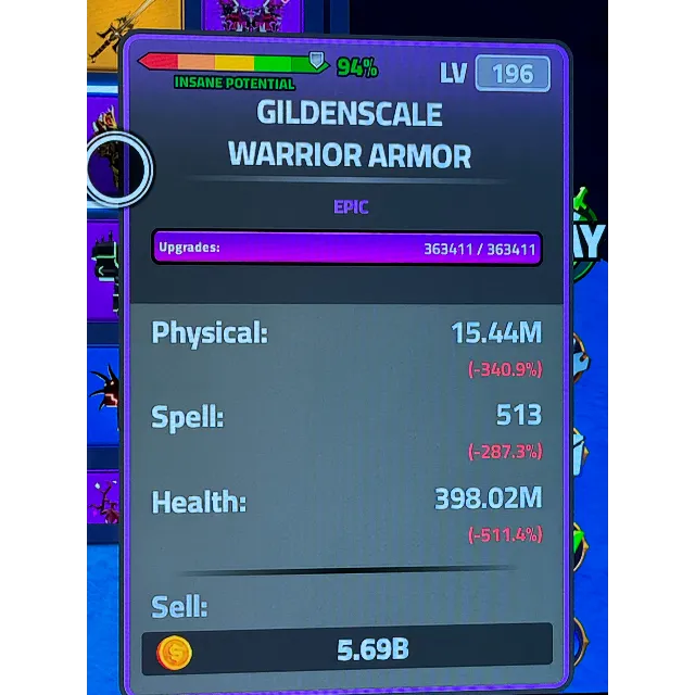 Epic glidenscale warrior armor 94% pot big value and great stats