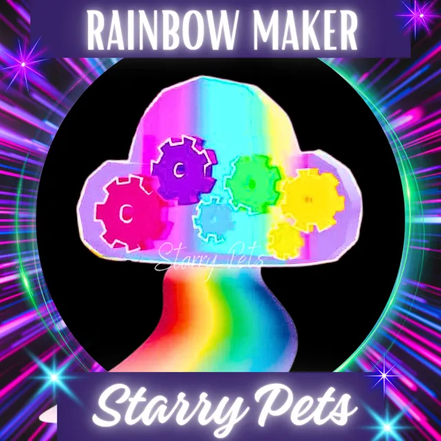 The Rainbow Maker is a limited legendary pet accessory in Adopt Me! that was released on April 28, 2022. It was removed from the game on September 29, 2022, it is no longer available in the game.