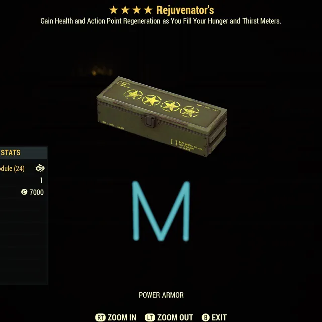 Fallout 76 Xbox one / 5 Rejuvenators four star power armor mods. Make sure to read mod description it was recently changed.