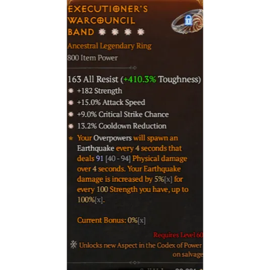 S11 Ring 4GA Strength Attack speed Critical chance RCR Diablo 4