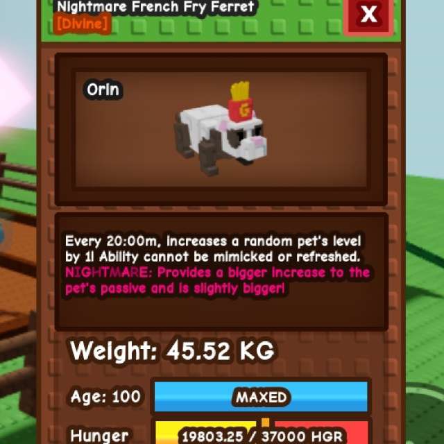 Semi-Huge Nightmare French Fry Ferret [45.52kg - 20m] Max Lvl