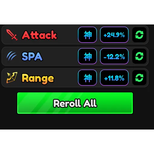 SET GODLY STATS (DMG, SPA, RANGE)