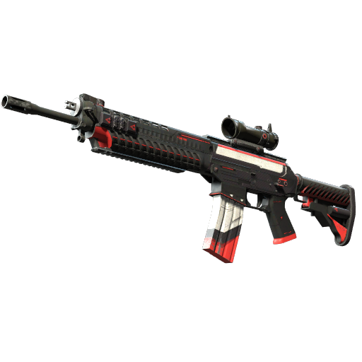 The terrorist-exclusive SG553 is a premium scoped alternative to the AK47 for effective long-range engagement. It has been custom painted with a high-tech design in black, white, and red.