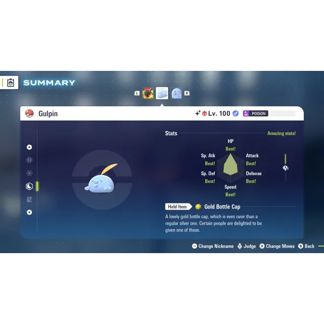 Shiny Alpha Gulpin 6 IV level 100 for Pokemon Legends ZA + free Golden Bottle cap
