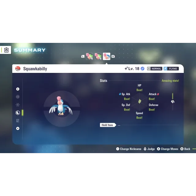 Shiny Squawkbilly Blue Adamant Nature 6 IV for Pokemon Legends ZA