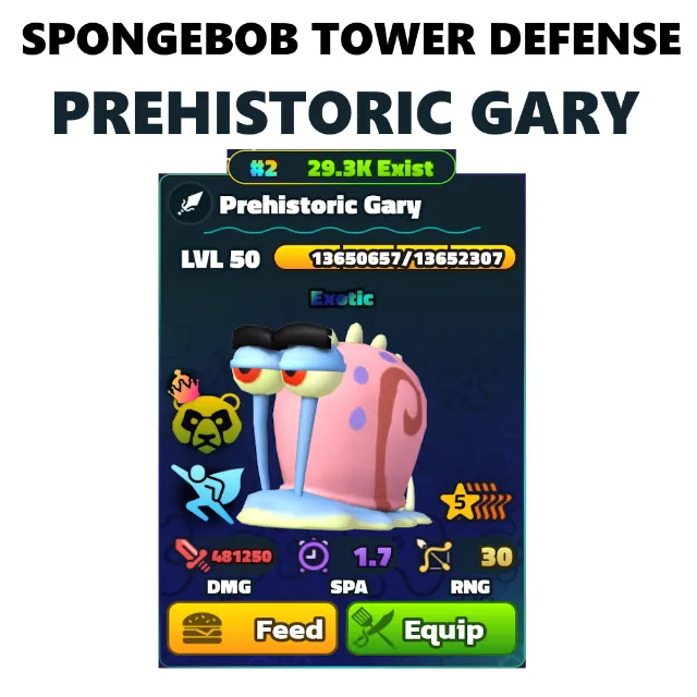 SPONGEBOB TOWER DEFENSE - PREHISTORIC GARY 5⭐ LVL 100/NC/PP 🌈 RAINBOW SERIAL #2 🌈