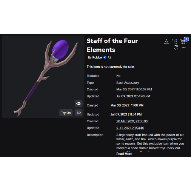 Staff of the Four Elements Toy Code