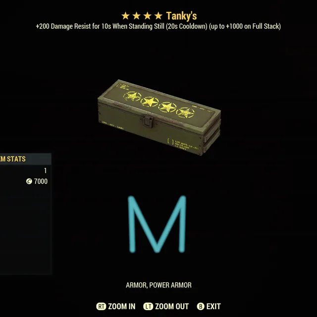 Fallout 76 Xbox one / 5 Tankys four star armor mods.