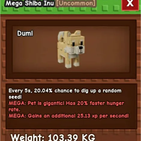 Type: Pet, titanic pets, grow a garden