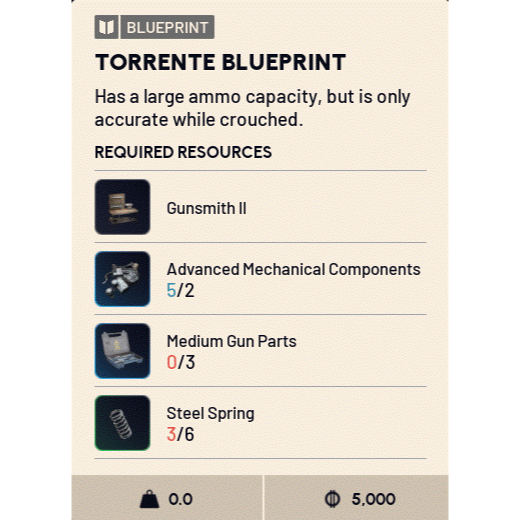 Craft your Torrente. Large ammo capacity.