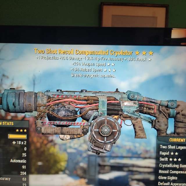 Two shots 25 weapon speed 15 reload speed