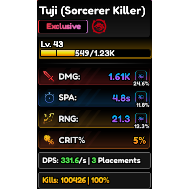 Tuji (Sorcerer Killer) Full Godly Stats